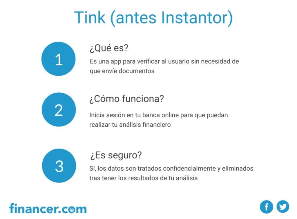 Instantor, que ahora se llama Tink, no es una entidad financiera y no da préstamos directamente. Instantor presta servicios de verificación y es utilizado por empresas de créditos online y bancos