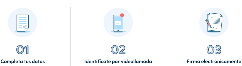Rellena el formulario con tus datos y confirma tu identidad a través de una video llamada. Recibirás un SMS con un código para firmar el contrato online