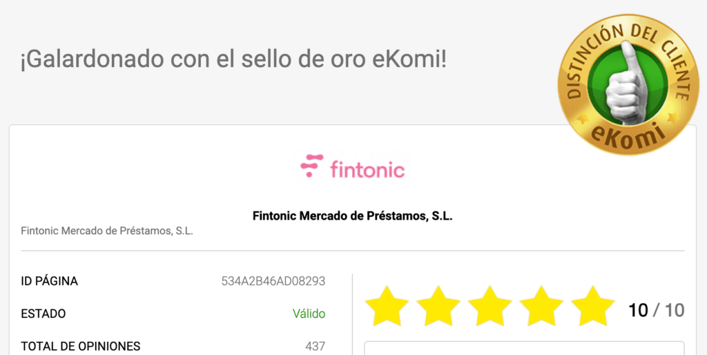 Y aunque pudieras sospechar de las opiniones publicadas en su web, no podemos ignorar las opiniones de Fintonic encontradas en Ekomi. Un portal especializado en publicar reseñas reales de usuarios.