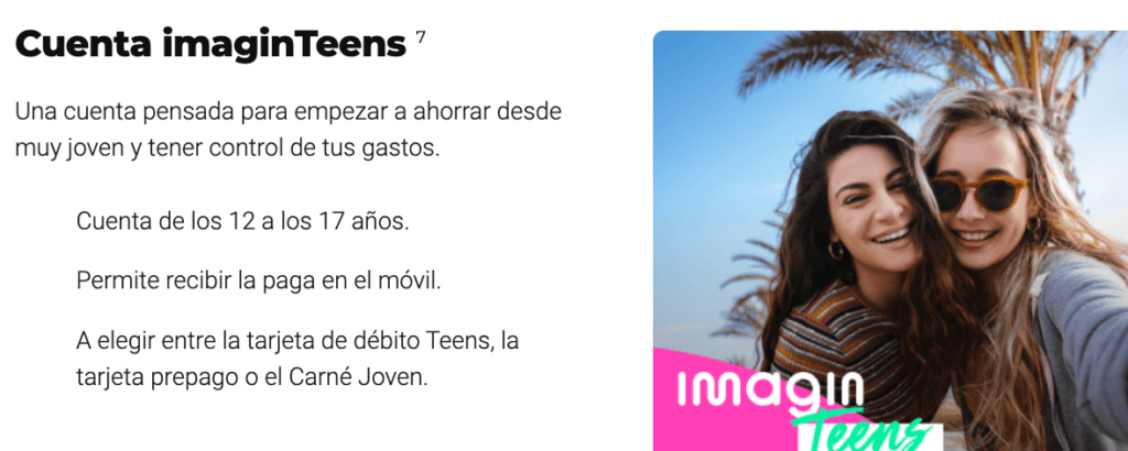La cuenta Imagin así como la tarjeta prepago no tiene comisiones siempre y cuando las operaciones se realicen online o en sus cajeros de CaixaBank.