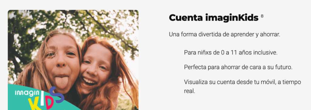 Es una alternativa para ir traspasando ahorros para tu hijo. Sin embargo, la cuenta ImaginKinds no ofrece ningún tipo de remuneración.