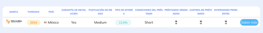 Por otro lado, echamos en falta una mayor diversidad en cuanto a originadores, ya que actualmente el único originador es Clicredito de México.