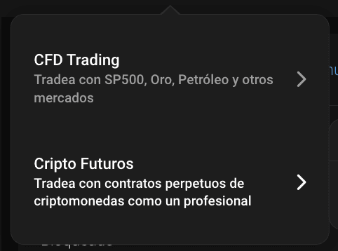 Por el momento, las opciones para realizar operaciones de compra y venta en PrimeXBT se limitan a los CFD, Contratos por Diferencia.
