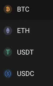 En PrimeXBT, tienes la opción de negociar con 4 criptomonedas: puedes comprar Bitcoin, Ethereum, Tether y USD Coin.