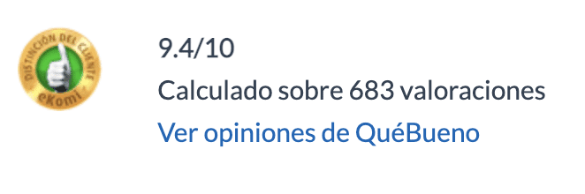 Además de las opiniones directas, QueBueno ha obtenido una valoración notable de 9.5/10 en Ekomi, lo que refleja la satisfacción de los usuarios en una plataforma externa de reseñas. Ekomi es una plataforma de evaluación y opiniones de clientes, lo que añade credibilidad a la puntuación recibida por QueBueno.