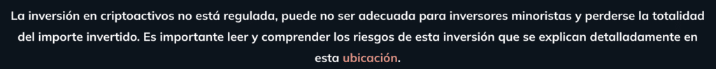 Todas las inversiones implican riesgos, aspecto que se señala claramente en el banner principal de la plataforma.