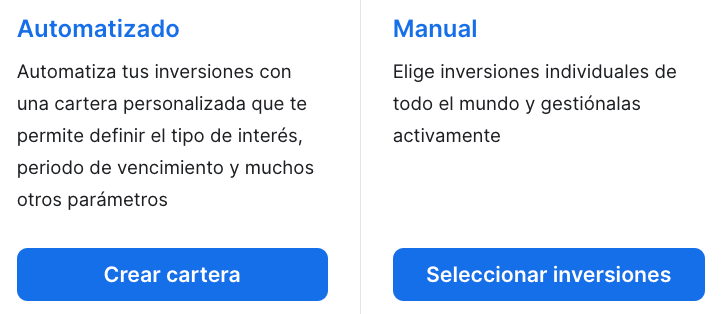 Si eliges las estrategias personalizadas, podrás optar entre la automatizada (conocida como auto inversion) y la manual.