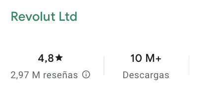 Respecto a la app de Revolut ha recibido una valoración de 4,8 en Google Play.* Los usuarios han destacado las herramientas para la administración y gestión eficiente del dinero.