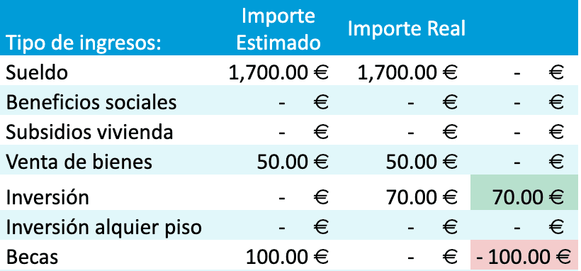 Y también el importe real de tus ingresos y los gastos.