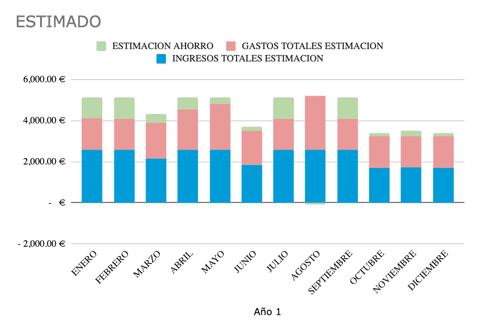 De esta manera tienes una visión general de tu situación económica, puedes ver a priori donde puedes hacer mejora y te permite gestionar de manera organizada tu economía.